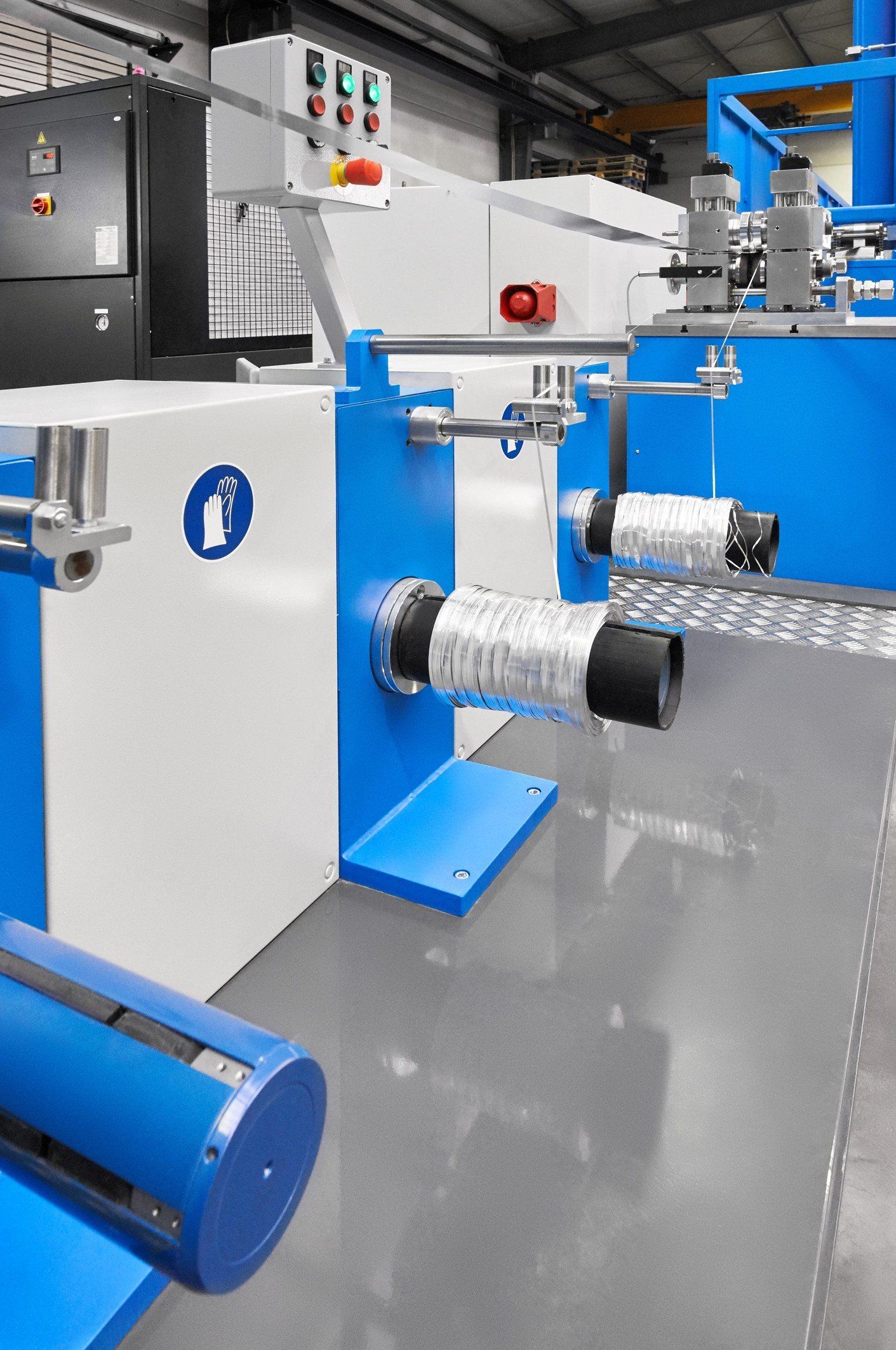 genannt dient dem Aufwickeln des Metallband-Verschnitts bei der Fertigung von Verbundrohren. Das Metallband wird in der vorgelagerten Besäumstation beidseitig