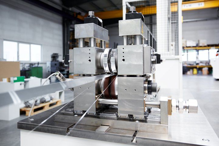 Mit Hilfe der Rollformwerkzeuge, auch Formstrecken genannt, werden die planen Metallbänder in ein gewünschtes Rohr oder Profil geformt.